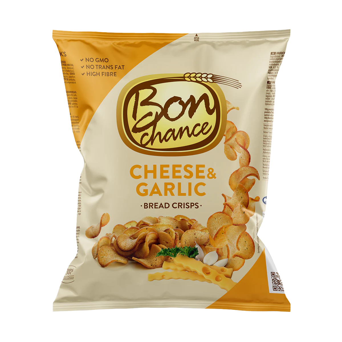 The timeless flavour of cheese and garlic, widely considered the "Ideal for Beer" choice, comes to life in these crunchy Bon Chance Cheese & Garlic Bread Crisps. These delicious crisps are expertly seasoned and made from wholesome rye-wheat bread, offering a deeply satisfying and aromatic crunch. They are a classic and highly popular pub snack for sharing with friends and family. Imported from Europe, these high-fibre, GMO-free crisps are a premium seller in any snack category.