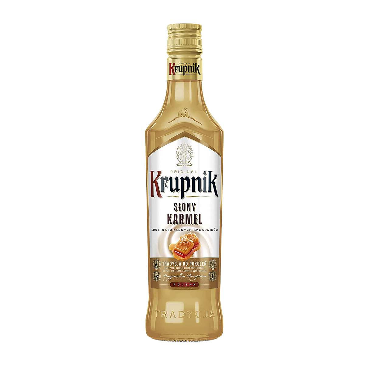 Product of Poland. Krupnik Salted Caramel is an original combination of the highest quality cream and aromatic caramel. The addition of sea salt perfectly breaks the sweetness of the drink. The liqueur has a fantastic velvety texture and a beautiful amber-like color. Our cream-based liqueurs softly melt in the mouth, revealing the experience of an exceptional delight. They are perfect both for drinking in a glass and as an addition to coffee, shakes or drinks. Culinary enthusiasts use them as toppings for ice cream and an ingredient in desserts: creams, mousses, cakes, cakes, cookies and many others.